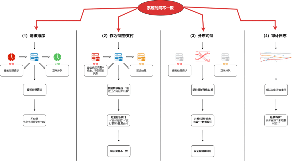 Handels- und Ticketing-PlattformDie Zeitverschiebung zwischen den Knotenpunkten kann zu einer falschen Anordnung der Schnappschüsse, zu Verwirrung bei Belegungs-/Freigabeentscheidungen und zu Problemen mit Überverkäufen oder der Nichtausstellung von Tickets durch die Belegung führen.