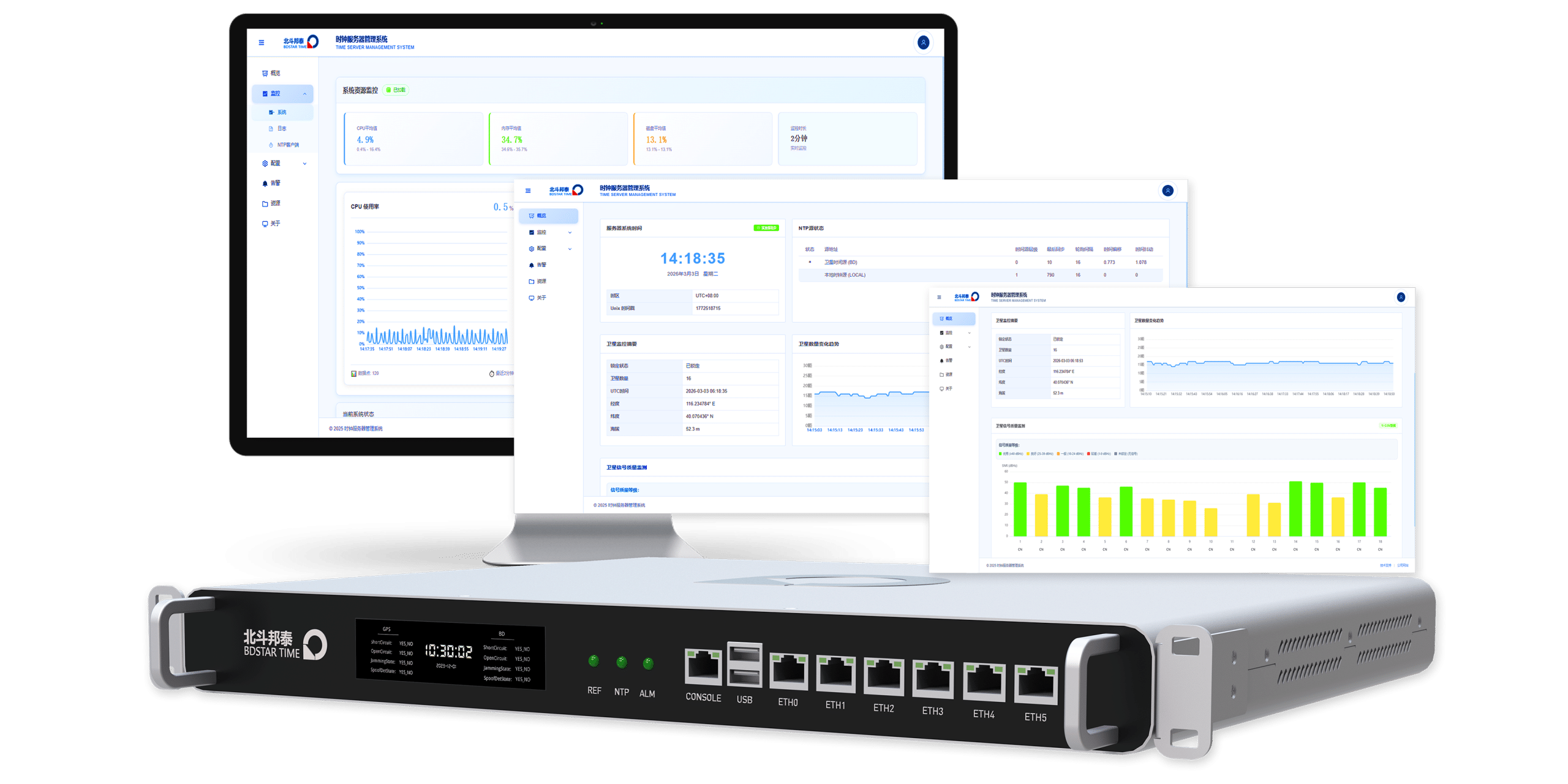 T600-BDネットワークタイムサーバーは、GNSSデュアルリファレンスソース、高性能産業用マザーボードとLinuxシステムを統合した組み込みハードウェアプラットフォームをベースとしており、マルチプロトコル高同時タイミング(NTP/SNTP)をサポートしています。T600-BDネットワークタイムサーバーは、マイクロ秒のタイミング精度と100万レベルのクライアントサポートを備えているだけでなく、豊富なインターフェースと柔軟な冗長配置機能を提供し、様々な産業向けに安定した信頼性の高いタイムインフラを構築します。 |
