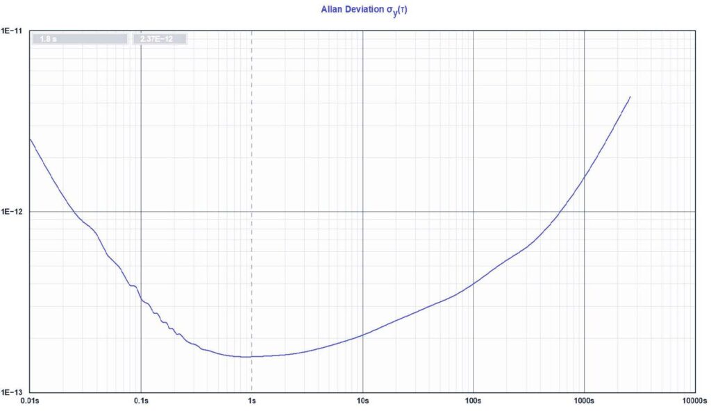 • 频率稳定度 ADEV 最低可达 1.5E-13/1s