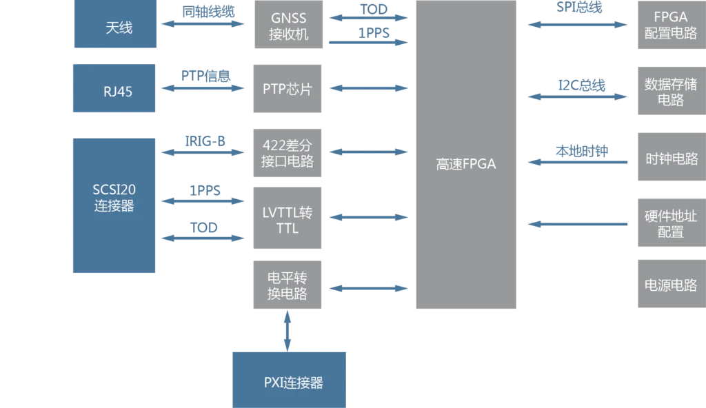 T220-X PXI授时卡支持多种参考输入和输出,可根据需求采用不同的组合为计算机系统提供高精度时间信息,同时也可对外授时。支持GPS、1PPS和TOD信号作为参考源输入,对外授时输出PTP、B码、TOD+1PPS信号。该板卡通过PXI接口为计算机传递时间信息和定时中断信号,实现计算机软件时间与板卡的时间同步。内置高稳恒温晶振,即使切断所有参考时间源,板卡内部高稳晶振仍能在一定时间内保持一定时间精度范围内连续运行,从而继续为计算机系统提供较准确的时间信号,提高了产品连续运行的可靠性。