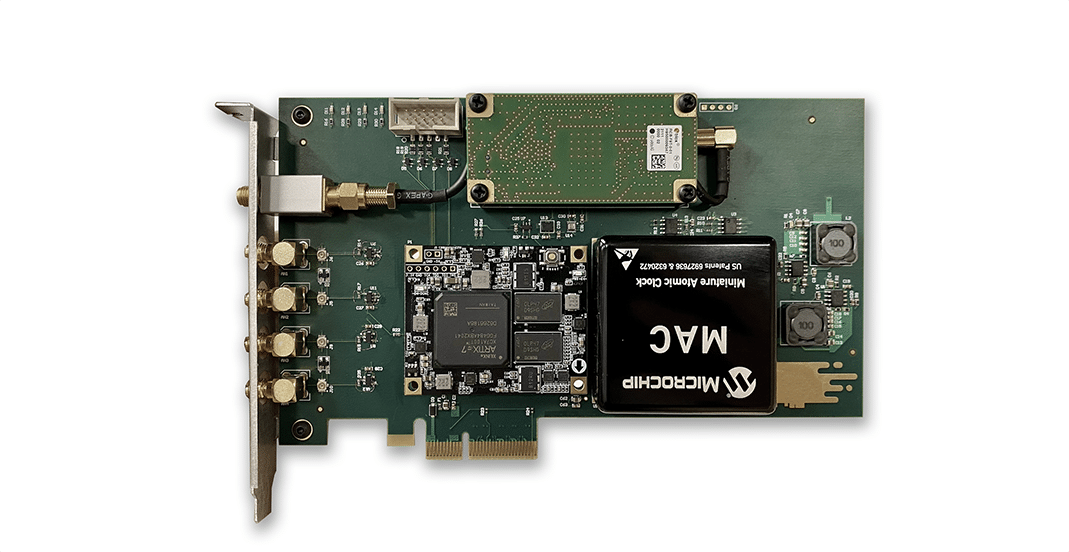 La tarjeta de sincronización T221-C PCIe es una solución de sincronización horaria de alto rendimiento para centros de datos, automatización industrial y telecomunicaciones. Consigue una sincronización horaria de nanosegundos y un rendimiento de holdover fiable mediante la integración de un receptor GNSS de alta precisión y un reloj altamente estable, como un OCXO o un reloj atómico. Admite múltiples entradas de fuentes de referencia temporal (por ejemplo, PPS y TOD) y proporciona señales de sincronización temporal e interrupción al host a través de la interfaz PCIe. Su arquitectura FPGA combina núcleos IP de código abierto y propietarios para soportar una personalización flexible y compatibilidad con protocolos de distribución de tiempo como IEEE 1588 (PTP). La tarjeta de cronometraje proporciona un mecanismo de seguridad eficaz para evitar las interferencias GNSS y cuenta con una ranura PCIe de diseño estandarizado para facilitar su integración y despliegue.