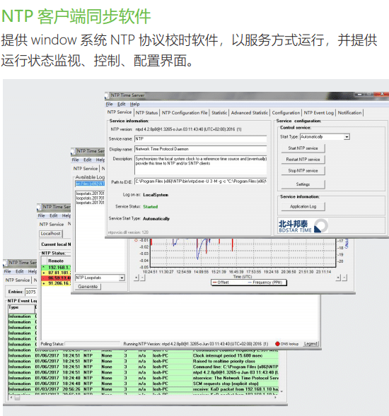 En outre, il prend en charge les fonctions TOD, 10MHz, 1PPS, l'enregistrement, la mise à jour et le téléchargement via le port USB, ainsi que la fonction d'alarme par contact sec, ce qui permet de réaliser facilement la synchronisation temporelle du réseau et une surveillance efficace avec le logiciel de surveillance unifiée du temps du réseau développé par Beidou Bontec.